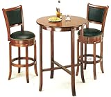 York Cherry Pub Table Set With 2 Leather Like Chairback